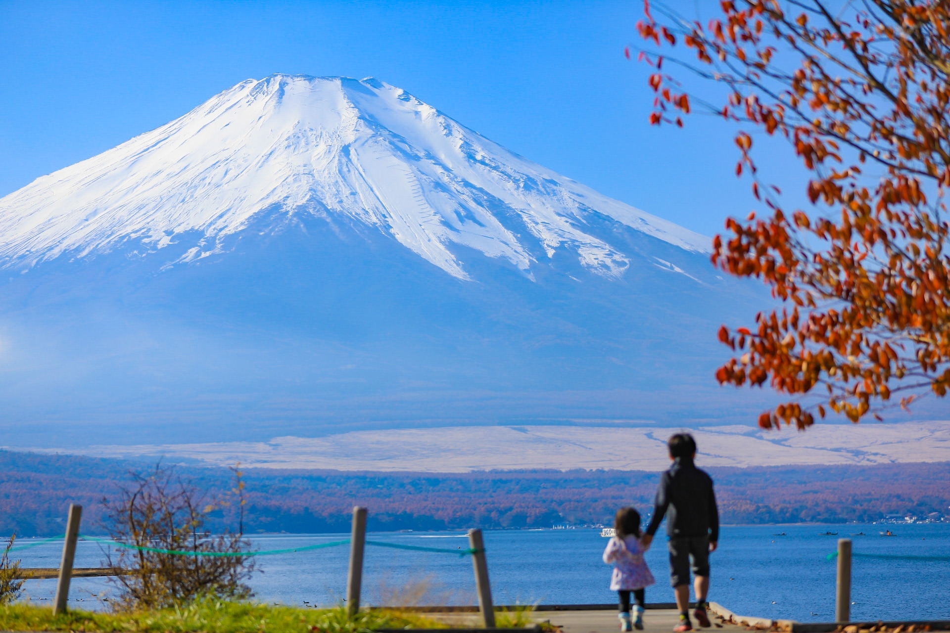 意味:紅葉晴れの日だ。富士山を映す河口湖が美しい。