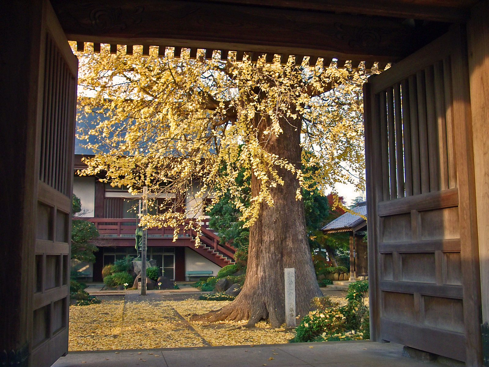 イチョウが金色の葉を一斉に落とすのは晩秋のことです。