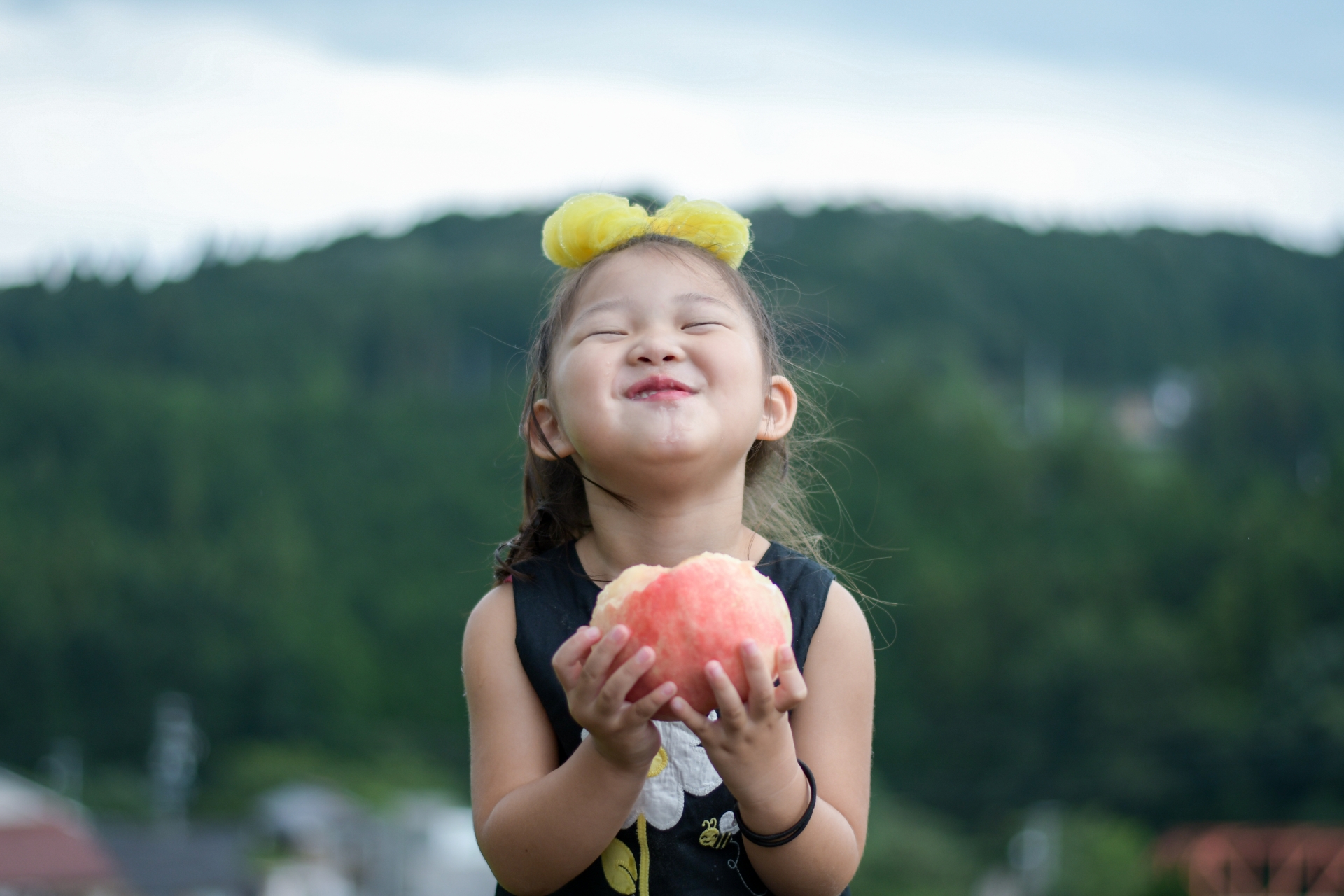 小さな我が子が桃の果汁で手を濡らしながら桃を食べている。その果汁が涙のように見えます。涙のようということは、嬉し涙や悔し涙など、この情景に対して何か感情が存在しているのでしょうか。