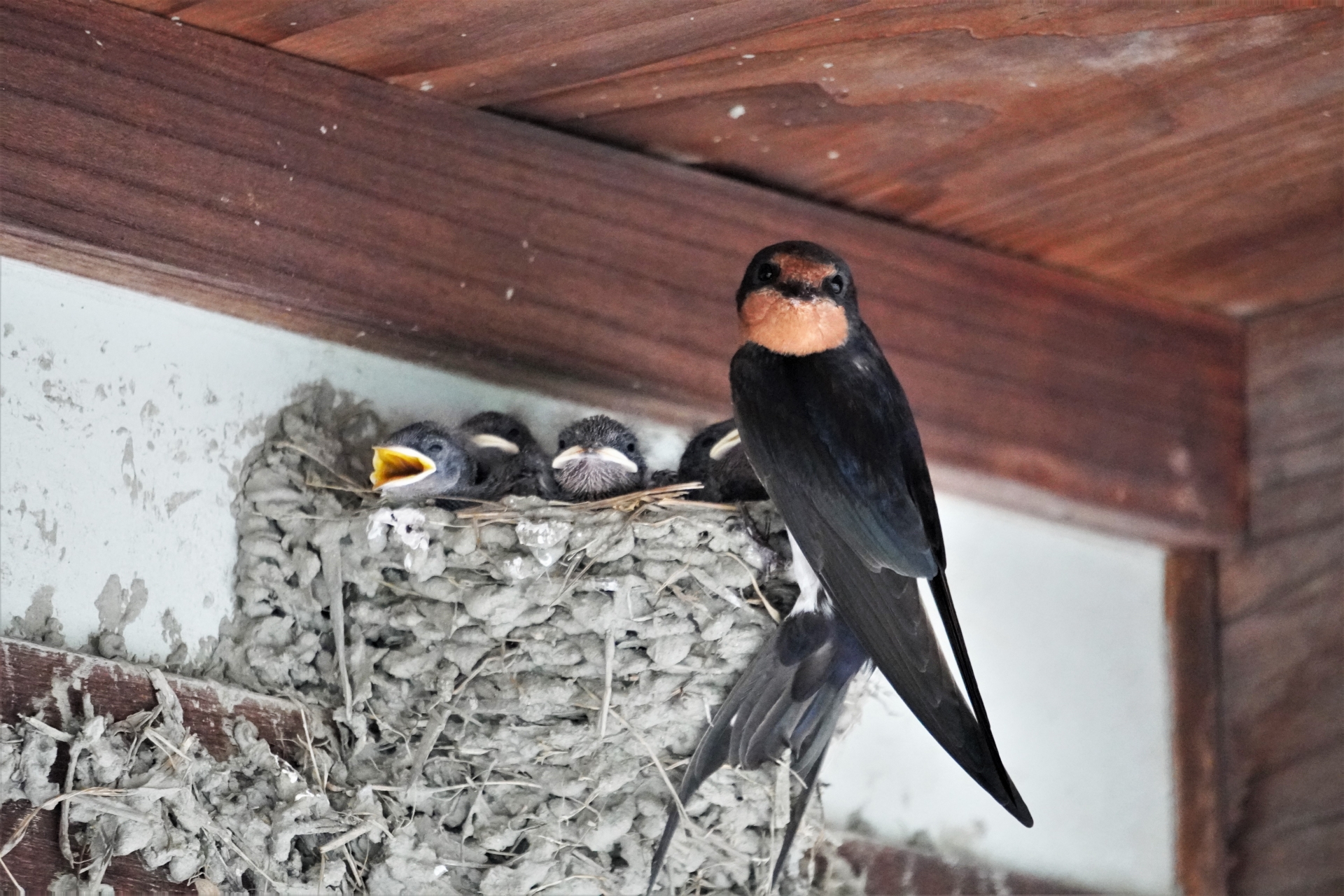燕は日本各地に春に渡ってきて軒下に巣をつくり、子育てをします。